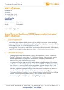 HOSTEL KÖLN – Terms and Conditions